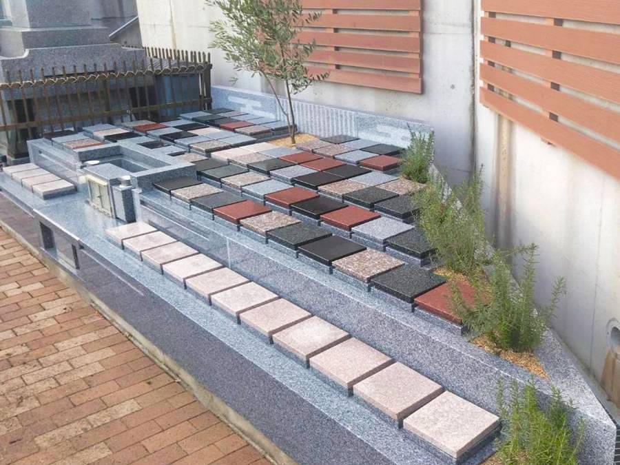 手前の1列目が1名様用の区画です。ほんのりと桜色を感じる、優しいピンク系の石碑です。