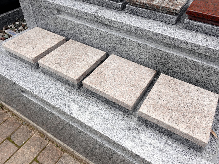 手前の1列目が1名様用の区画です。ほんのりと桜色を感じる、優しいピンク系の石碑です。